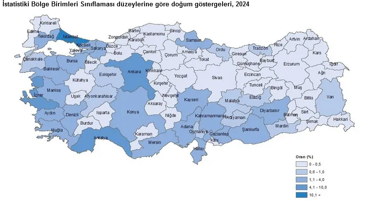 İllere göre bakıldığında ise İstanbul, 2024 yılında doğan girişimlerin yüzde 25,8'ini aldı. İstanbul'u yüzde 7,5 ile Ankara ve yüzde 6,5 ile İzmir izledi.