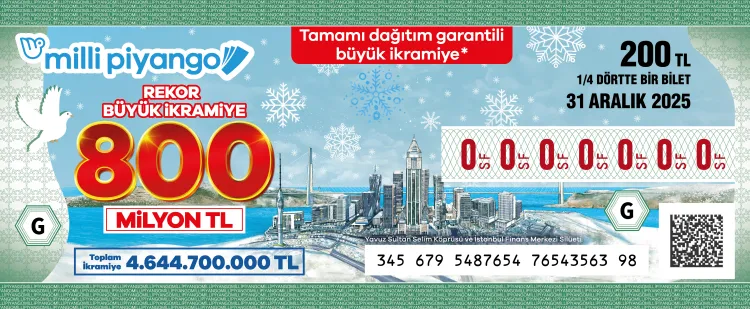 Milli Piyango yılbaşı özel çekilişinde 800 milyon TL'lik büyük ikramiyenin tamamı geçtiğimiz yıl olduğu gibi bu yıl da dağıtım garantili olacak.