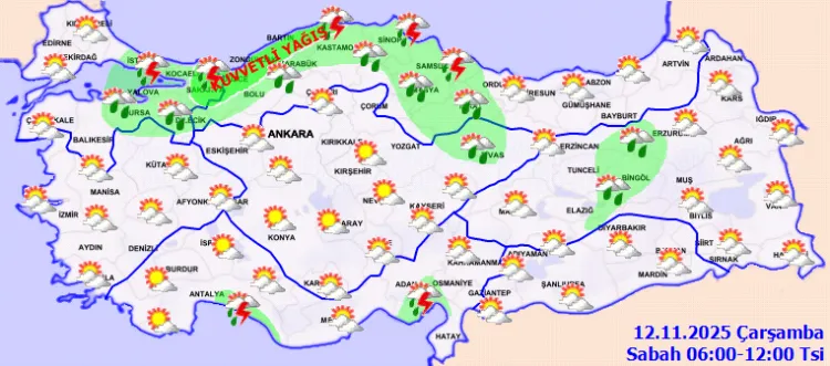 ANKARA (İGFA) - Meteoroloji Genel Müdürlüğü, 12 Kasım Çarşamba gününe ilişkin hava tahmin raporunu yayımladı.