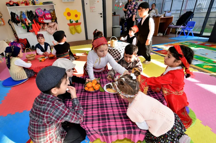 İZMİR (İGFA) - Merkezden yararlanan 3-6 yaş arası minikler, getirdikleri yiyeceklerin yetiştiği yörelere ait kıyafetler giyerek yerli üretimin önemine dikkat çekti.