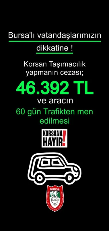 BURSA (İGFA) - Taksici esnafıyla gittikleri iş birliği neticesinde 'Korsan Taşımacılıkla Mücadele Komisyonu' kurduklarını belirten Bursa Şoförler ve Otomobilciler Esnaf Odası Başkanı Ahmet Çakır, "Komisyonumuz korsan faaliyetlere karşı mücadelesini aktif olarak sürdürmektedir. Vatandaşlarımızdan korsan taksilere itibar göstermemelerini rica ediyoruz. Karayolları Trafik Kanunu'nun ilgili maddesi uyarınca, korsan taksileri tercih eden yolculara 3 bin 84 TL'lik para cezası uygulanmaktadır. Bununla birlikte yolcuların mal ve can güvenlikleri açısından da korsan taksiler, birer tehdit unsuru oluşturmaktadır" diye konuştu.