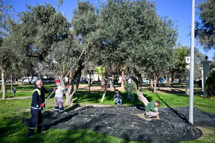 İZMİR (İGFA) - İzmir Bornova Belediyesi ekipleri, ilçenin sorumluluğunda bulunan park, bahçe ve rekreasyon alanlarındaki toplam 1500 zeytin ağacında hasada başladı. Bornova'nın bereketli zeytinlerinden elde edilen zeytinyağları, üretim sürecinin tamamlanmasının ardından Kent Market raflarında ihtiyaç sahibi Bornovalılara ücretsiz olarak sunulacak.