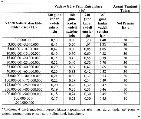 Buna göre ciro sınırı genişletildi. Sigortadan yararlanmak için gereken yıllık yurt içi satış cirosu sınırı, 500 milyon TL'den 1 milyar TL'ye çıkarıldı.