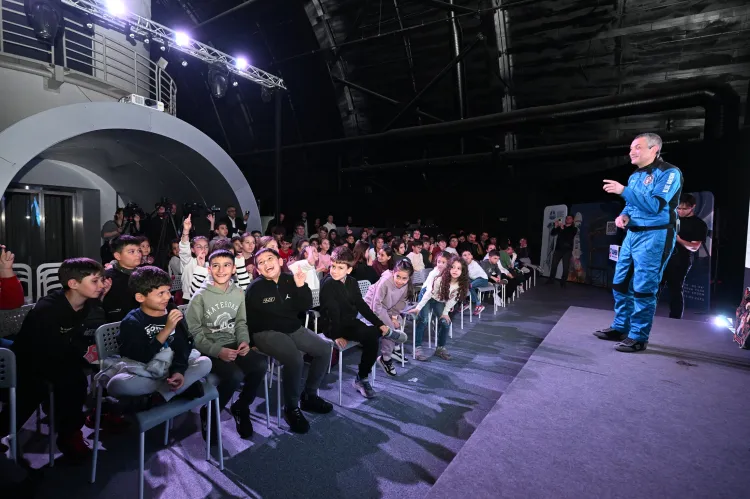 BURSA (İGFA) - GUHEM'de öğrencilerle bir araya gelen Astronot Gökhan Erdem, Blue Origin'in NS-34 misyonunda yörünge altı uçuşundaki ilham verici hikayesini Bursalı öğrencilerle paylaştı. Uzaydan dünyaya bakmanın çok büyük bir heyecan olduğunu belirten Erdem, 6 kişilik bir kapsülde birçok ülkeden astronotla misyonu tamamladığını hatırlattı.
