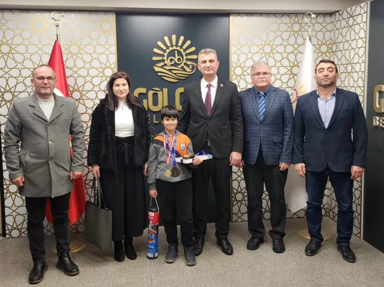 Gölcük Belediye Başkanı Ali Yıldırım Sezer, Güneydoğu Asya Matematik Olimpiyatları ve FERMAT Matematik Olimpiyatlarının Ulusal Turu'nda 3 altın madalya kazanan Halıdere İlkokulu öğrencisi Sarp Arel Güvenç'i makamında ağırlayarak tebrik etti.