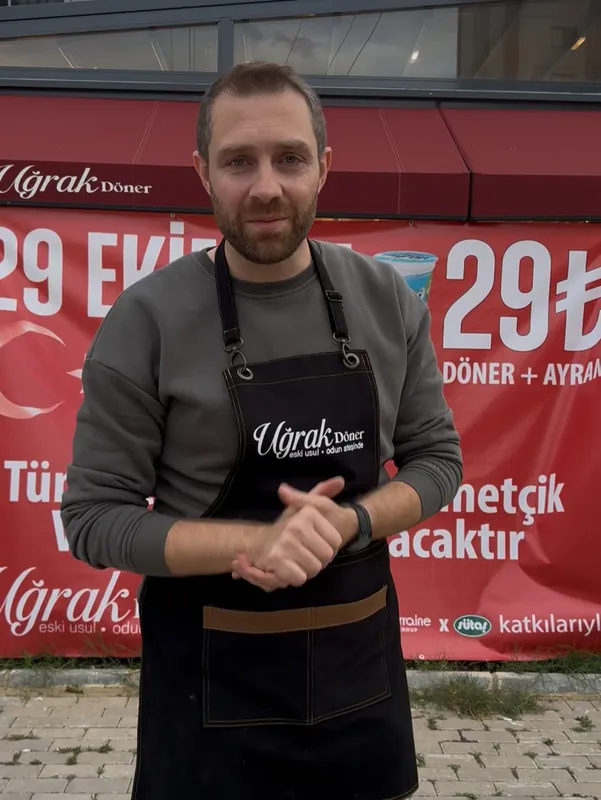 Uğrak Döner 23 Nisan Mahallesi Şubesi 29 Ekim Cumhuriyet Bayramı'na özel anlamlı kampanya ile tavuk döner ayranı ile birlikte sadece 29 TL verilecek.