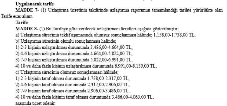 Ücretler, uzlaştırma raporunun ibraz edilmesinin ardından Cumhuriyet savcısının sarf kararıyla ödenecek ve tarife 2026 yılı boyunca uygulanacak