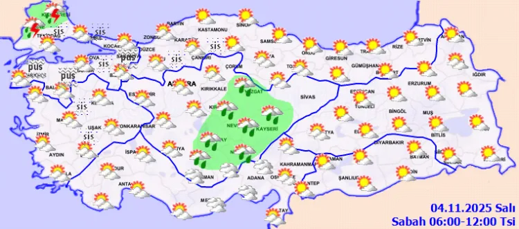 ANKARA (İGFA) - Meteoroloji Genel Müdürlüğü, 4 Kasım Salı gününe ilişkin hava tahmin raporunu yayımladı.