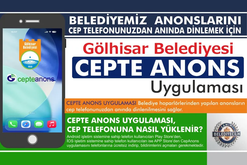 Gölhisar Belediyesi İlan Servisi tarafından hoparlör sistemi ile yapılan sesli duyurular, artık "Cepte Anons" uygulaması aracılığıyla vatandaşların cep telefonlarına otomatik olarak gönderilecek.