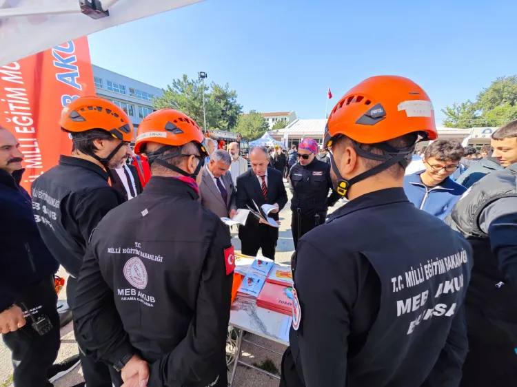 BURSA (İGFA) - Tüm Türkiye'de eş zamanlı düzenlenen Afet Farkındalık etkinlikleri dolayısıyla Bursa İl Millî Eğitim Müdürlüğü İş Yeri Sağlık ve Güvenlik Birimi bünyesinde görev yapan MEB AKUB koordinasyonunda, Atatürk Mesleki ve Teknik Anadolu Lisesi ev sahipliğinde bir dizi etkinlik gerçekleştirildi.
