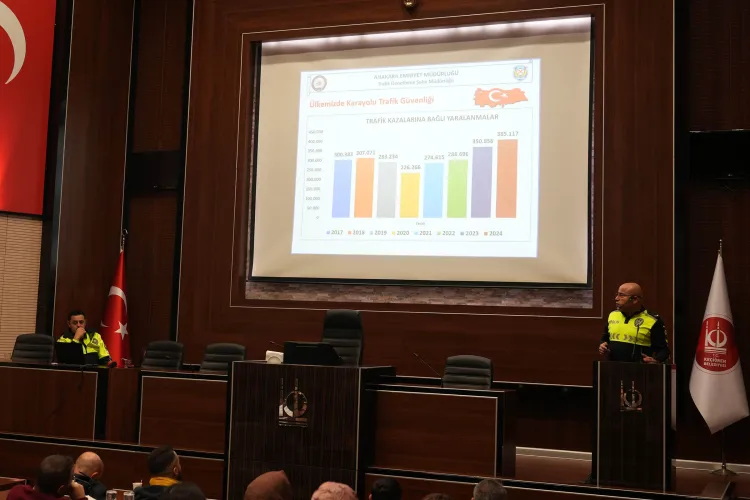 Ankara Emniyet Müdürlüğü Trafik Denetleme Şube Müdürlüğü'nde görev yapan Başpolis ve Eğitimci Fikret Gündüz ile ekip arkadaşlarının gerçekleştirdiği eğitimde, trafik kurallarına uymanın önemi vurgulanırken, en sık yaşanan kaza türleri ise istatistiklerle aktarıldı.