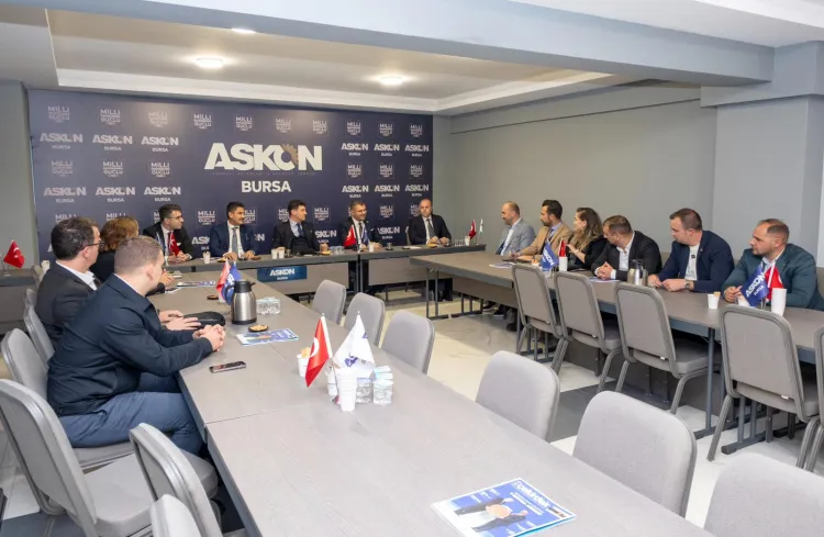 BURSA (İGFA) - ASKON Bursa Yönetim Kurulu Başkanı Emre Yıldız ve Yönetim Kurulu Üyelerinin ev sahipliğinde gerçekleşen görüşmede, Kosova ile Bursa arasındaki ticari ilişkilerin geliştirilmesi, karşılıklı yatırım fırsatlarının değerlendirilmesi ve yeni iş birliği alanlarının oluşturulması konuları masaya yatırıldı.