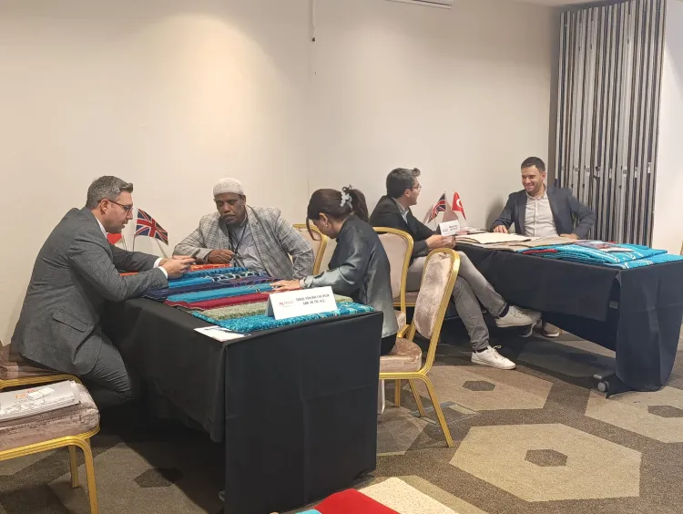 İngiltere Halı URGE Ticaret Heyeti'ndeki firmaların Londra Ticaret Müşaviri Zeynep Sezen'in de katıldığı "İkili İş Görüşmeleri"nde İngiltere'den firmalarla ikili iş görüşmeleri yaptığının altını çizen Eskinazi şöyle devam etti: "İngiltere halı sektörüne ilişkin fiyat araştırması yapılmasına, kalite standartları ve nakliye, navlun gibi lojistik süreçler hakkında detaylı bilgi alınmasına ve katılımcı firmaların ihracatlarını arttırmaya yönelik somut adımlar atılmasına olanak sağlandı."