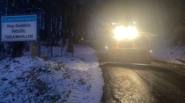 Bursa İnegöl'de dün başlayan kar yağışı özellikle yüksek kesimlerde etkili olurken, İnegöl Belediyesi ekipleri yağışla birlikte sahaya indi. Ulaşımda herhangi bir aksaklık yaşanmazken, gece boyu kar küreme ve tuzlama çalışmaları devam etti.