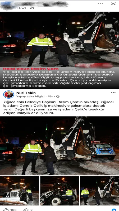 Gazeteci Sefer Demir, Yığılca'ya yönelik "yardım ve hizmet" olarak paylaşılan videoların, aslında Alaplı Belediye Başkanı Nuri Tekin'in sosyal medya hesaplarında yer alan görüntülerle birebir örtüştüğünü ortaya koydu. Demir, söz konusu paylaşımların Alaplı'daki çalışmalara ait olduğunu belge ve karşılaştırmalarla kamuoyuna sundu.