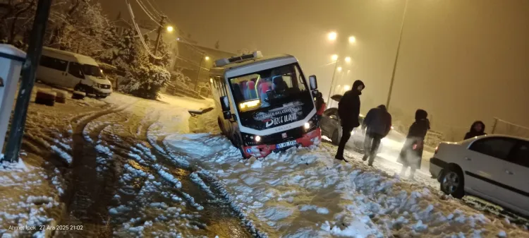 Düzce'de kontrolden çıkan halk otobüsünün şarampole devrildiği kazada facia ucuz atlatıldı. Kazada yaralanan olmazken, otobüste kış lastiği bulunmadığının tespit edilmesi tepki çekti.