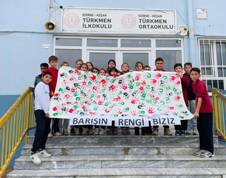 Edirne'de Keşan İlçe Milli Eğitim Müdürlüğü koordinasyonunda, ilçedeki okullarda Filistin farkındalık etkinlikleri gerçekleştirildi. Öğrenciler, kendi hazırladıkları etkinliklerle Filistin halkına destek mesajı verdi.