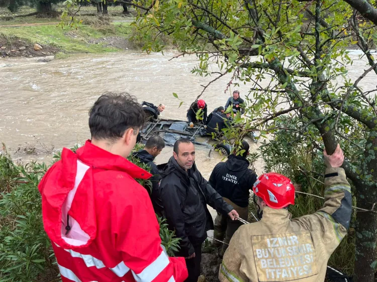 Yağışın etkili olduğu bölgede bir aracın sel sularına kapılarak Bucak Deresi'ne düştüğü öğrenildi. Araçta birilerinin olma ihtimaline karşı İzmir İtfaiyesi ekipleri araç içerisinde ve derede arama kurtarma çalışmaları sürdürüyor.