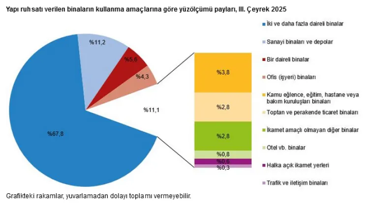 Bu arada 2025 III. çeyreğinde yapı kullanma izin belgesi verilen binaların sayı ve yüzölçümünde de artışlar görüldü.