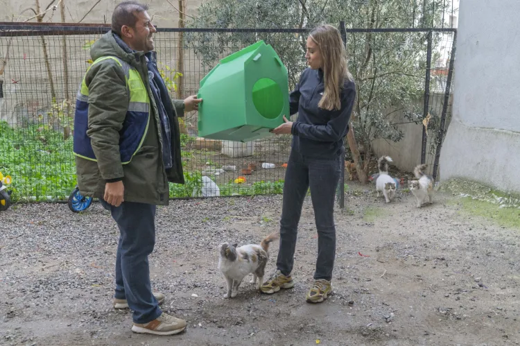 İzmir Büyükşehir Belediyesi, soğuk havalarda barınma sorunu yaşayan sokak kedileri için portatif kedi evi dağıtımına başladı. Hayvanseverlerin talepleri mahalle mahalle karşılanıyor.