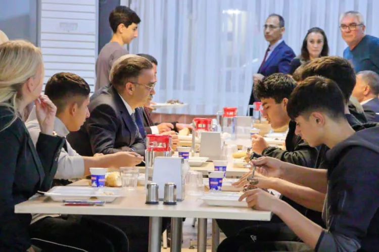 Öğrencilerin görüş ve önerilerini dikkatle dinleyen Yahşi, "Bu akşam sizlerle aynı sofrayı paylaşmak, ikinci yuvanız olan bu pansiyonda hayallerinizi, umutlarınızı ve ilgi alanlarınızı öğrenmekten büyük mutluluk" dedi.