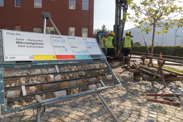 Yapı envanteri, zemin çalışmaları, kara ve denizde yapılan depremsellik araştırmaları, kente dair önemli verilerin elde edilmesini sağlıyor. Bornova'da 7 bin hektarlık alanda saha çalışmalarını tamamlayan ekiplerin mikrobölgeleme için yeni adresi ise Karşıyaka oldu. İzmir Büyükşehir Belediyesi'nin Örnekköy Sosyal Tesisleri ile Mustafa Kemal Mahallesi'nde sondaj makineleri ile zeminden numune alındı. Uzmanlar, ilçede yaklaşık 2 bin hektarlık alanı bu yöntemle inceleyecek.