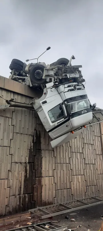 Ankara Caddesi 4. Sanayi Sitesi girişindeki yolda kontrolden çıkan tır, yaklaşık 12 metrelik viyadükte asılı kaldı.