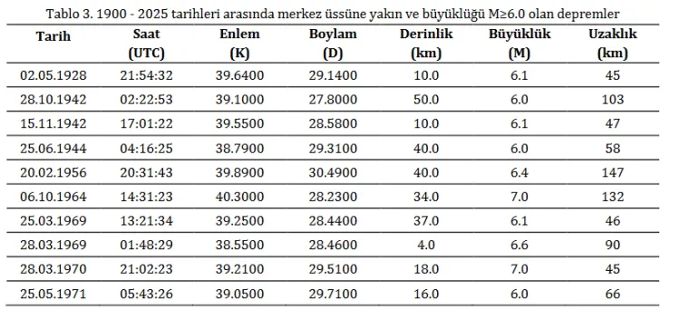 Odak derinliği 6.0 km olan sığ depremin şiddetli sarsıntılara yol açtığının altı çizilen raporda, depremin Kütahya il sınırlarının batı-güneybatısında Emet-Gediz ve Simav Fay Zonları etkisi altında olduğu belirtildi.