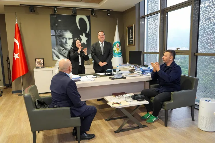MANİSA (İGFA) - Avrupa'da işitme engelliler sporuna liderlik eden Manisa İşitme Engelliler Spor Kulübü Başkanı Bilal Cansu ve yönetimi, DCL Yönetim Kurulu Üyeleri Thomas Kramer ve Rosario De Caro ile birlikte Manisa Büyükşehir Belediye Başkanı Besim Dutlulu'yu ziyaret etti.