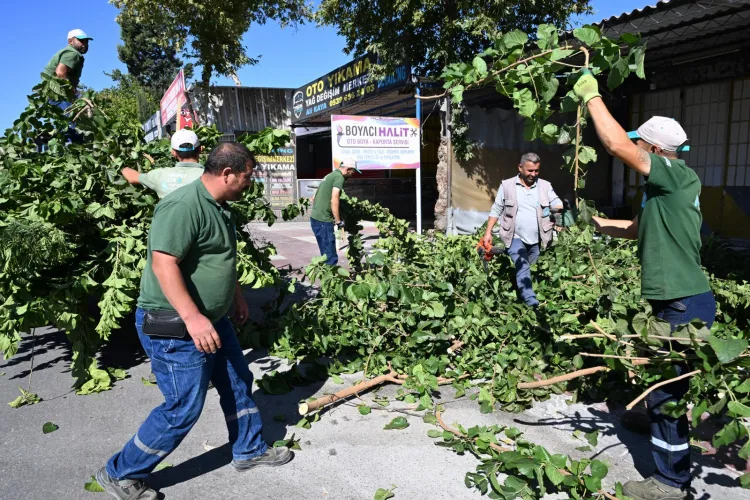 MANİSA (İGFA) - Manisa Büyükşehir Belediyesi Kent Estetiği Dairesi Başkanlığı ekipleri tarafından yapılan çalışmada, sanayi sitesi içerisinde yer alan ağaçlarda kontrollü budama yapılarak hem çevre estetiği sağlandı hem de rüzgâr ve yağışlı havalarda oluşabilecek risklerin önüne geçildi.