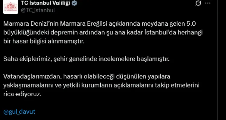 İstanbul Valiliği'nin sosyal medya hesabından da herhangi bir olumsuzluğun bildirilmediği belirtilerek, saha ekiplerinin çalışmaların sürdürüldüğünü kaydetti.