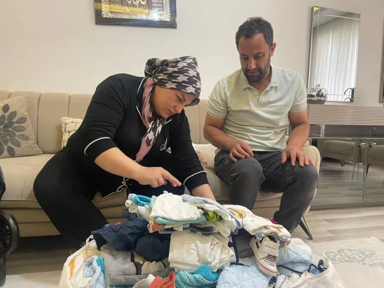 Dokuz ay bekledikleri bebeklerini kucaklarına almadan minik kefen içinde mezara koyan aile, erkek bebekleri için aldıkları eşyalara baktıkça gözyaşlarına boğuluyor, acıları tazeleniyor.