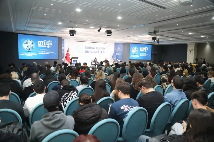 BURSA (İGFA) - Bursa Teknik Üniversitesi tarafından düzenlenen BTÜ Konuşmaları'nın bu haftaki konuğu, Üsküdar Üniversitesi Kurucu Rektörü ve Psikiyatrist Prof. Dr. Nevzat Tarhan oldu. Mimar Sinan Yerleşkesi Turkuaz Salon'daki programa BTÜ Rektörü Prof. Dr. Naci Çağlar, Yıldırım Kaymakamı Metin Esen, akademisyenler ve çok sayıda öğrenci katıldı.