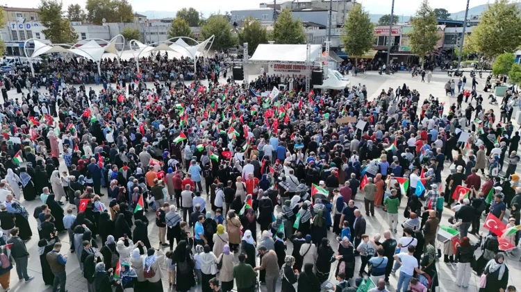 Sakarya Millet Bahçesi'nde bir araya gelen binlerce kişi ellerinde Filistin bayraklarıyla, "Özgür Filistin" ve "Kahrolsun İsrail" gibi sloganlarla şehrin merkezinde yürüdü.