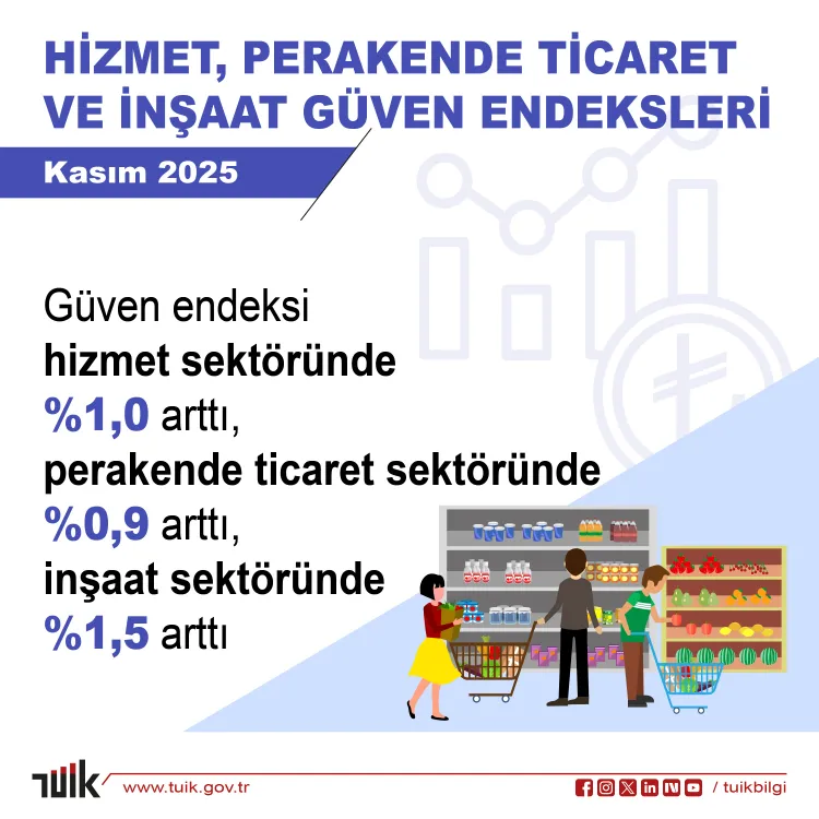 ANKARA (İGFA) - TÜİK, Hizmet, Perakende Ticaret ve İnşaat Güven Endeksleri'nde Kasım ayı verilerini yayımladı.