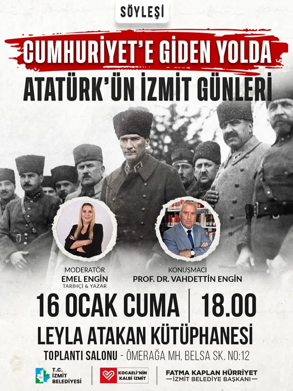 İzmit Belediyesi Kültür ve Sosyal İşler Müdürlüğü tarafından düzenlenen programda, tarihçi-yazar Emel Engin'in moderatörlüğünde akademisyen Prof. Dr. Vahdettin Engin konuk olacak. Söyleşi, basının kurucu süreçteki belirleyici işlevini masaya yatıracak.