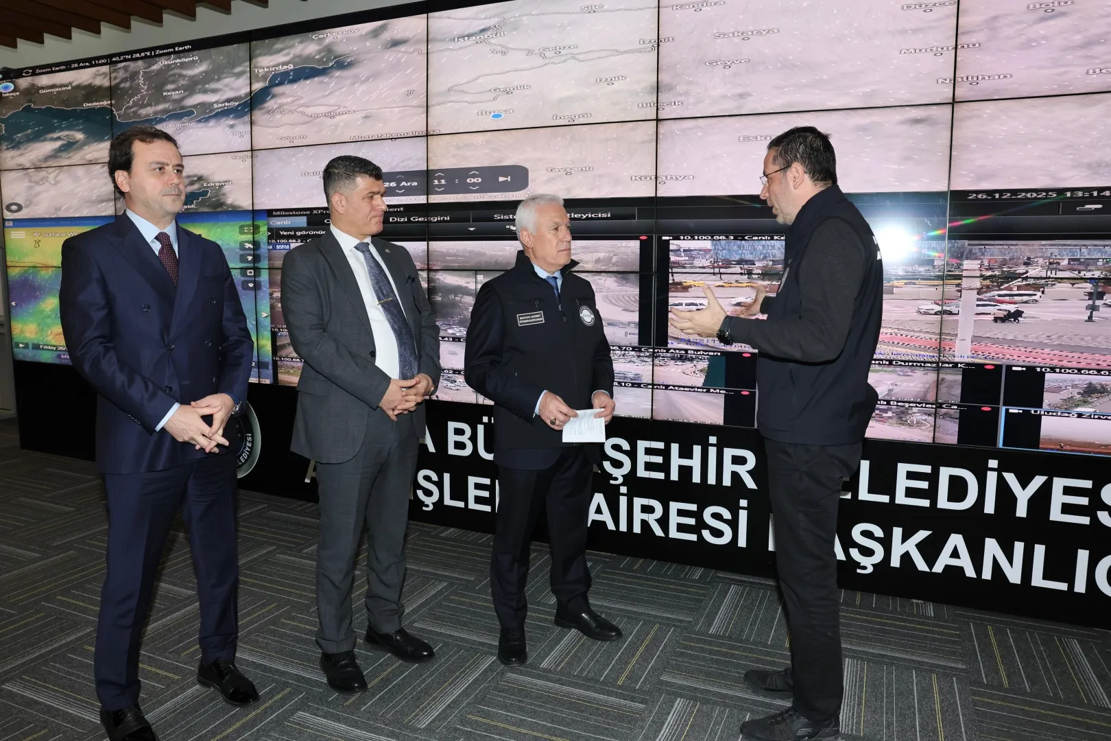 Bursa Büyükşehir Belediye Başkanı Mustafa Bozbey, Afet Koordinasyon Merkezi’ni (AKOM) ziyaret ederek yağış beklentisi ve yapılan hazırlık çalışmaları hakkında bilgi aldı. Büyükşehir ekiplerinin yoğun kar yağışı dahil olmak üzere en nitelikli hizmeti verecek şekilde hazır bulunduğunu belirten Başkan Bozbey, “Ekiplerimiz ve ilçe belediyelerin ekipleri uyum içinde çalışarak çıkabilecek olumsuzlukları en aza indirmek amacıyla sahada olacak. Ayrıca yolda kalan vatandaşlarımız bir telefon aracılığıyla bize ulaşabilir. Onlara hem sıcak yemek desteği, hem de yolda kalma ve benzeri durumlarda teknik müdahale desteği vereceğiz. Arkadaşlarımız her türlü hazırlığı yapmış durumda. Bursalılar hiç endişe etmesin” diye konuştu.