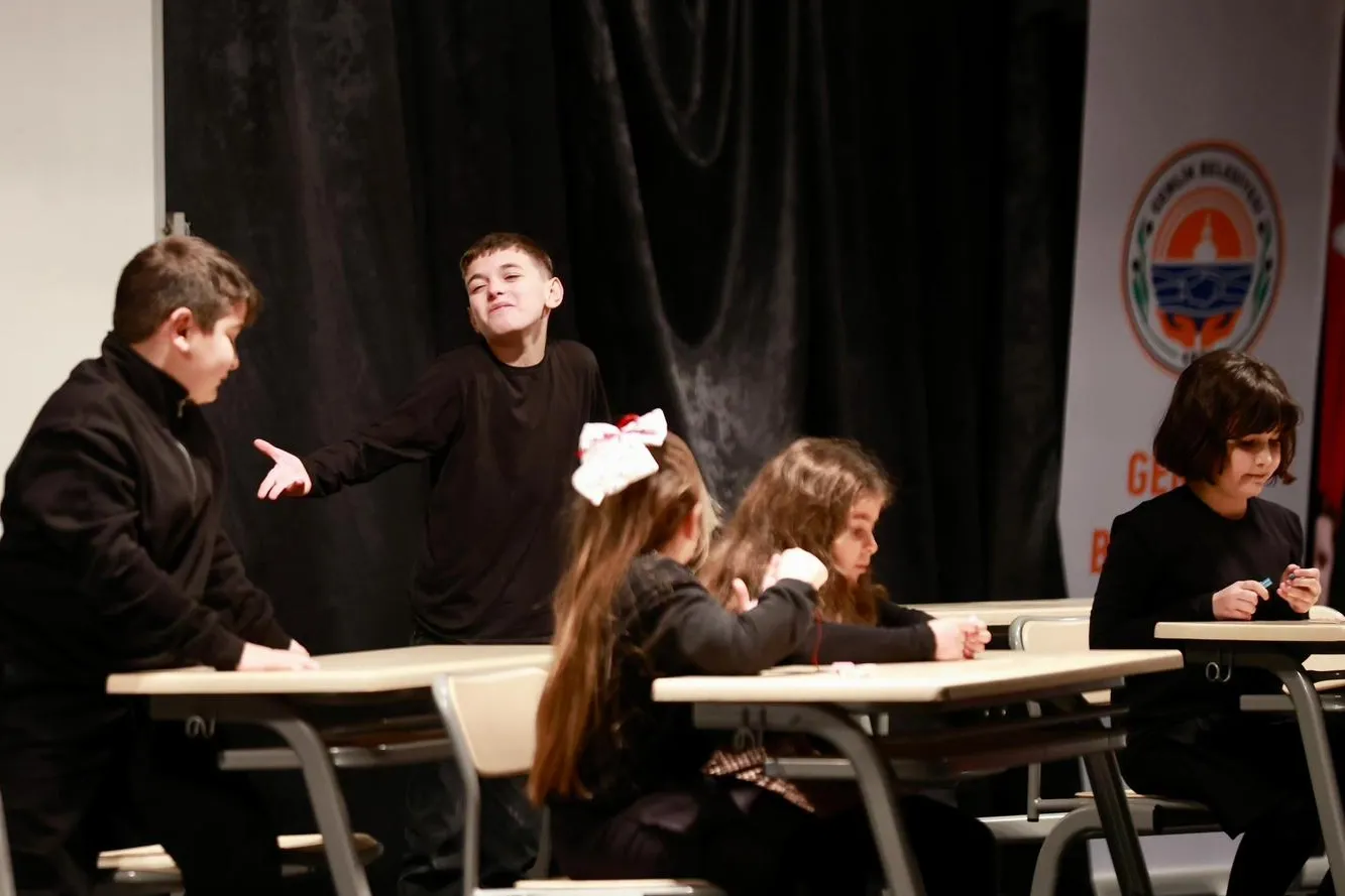 Bursa'da Gemlik Belediyesi tarafından düzenlenen çocuk etkinlikleri kapsamında, “Okulda Sıradan Bir Gün” adlı tiyatro oyunu çocuklarla buluşturuldu.