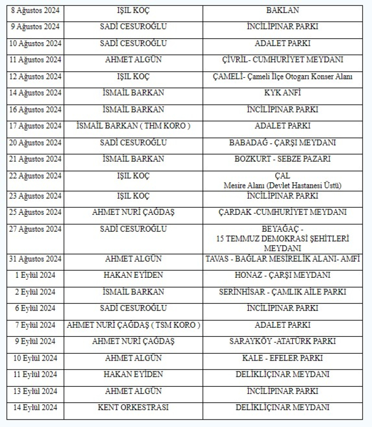 Denizli Büyükşehir Belediyesi Konservatuar sanatçılarının sahne alacağı yaz konserleri 14 Eylül’e dek sürecek.
