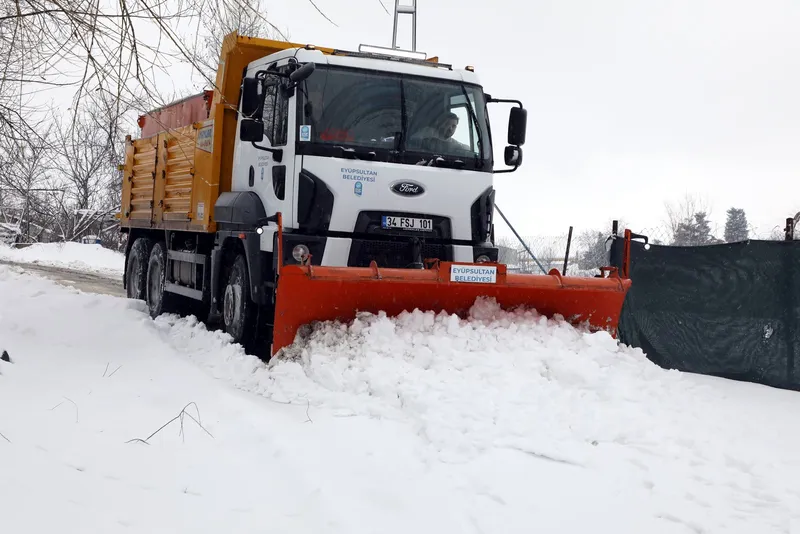 Meteorolojik uyarılar sonrası Eyüpsultan Belediyesi ekipleri, ilçe genelinde 52 araç ve 118 personelle kar küreme ve tuzlama çalışmalarına başladı. Kritik noktalara öncelik veren ekipler, şu ana kadar 350 ton tuz kullandı.