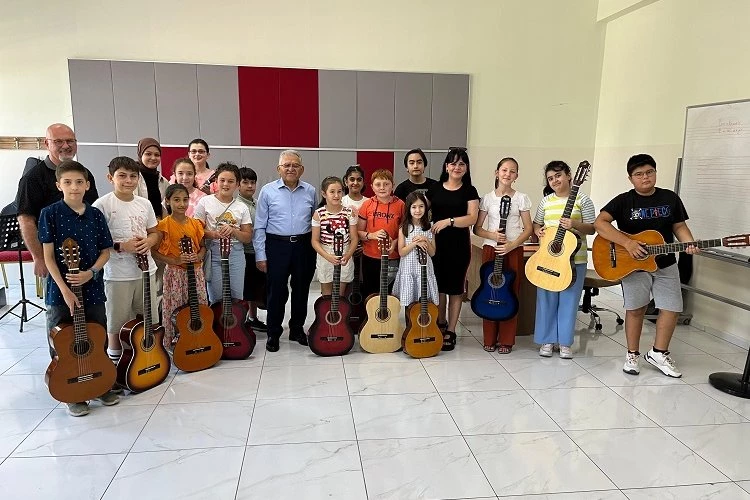 Gitar kursu verilen sınıfa girerek, gitar çalan gençleri ilgiyle izleyen Başkan Büyükkılıç, “Sizleri görünce içimiz ısınıyor. Umarım hizmetlerimizden yararlanıyorsunuzdur, bu kurslarla bir yetenek ortaya çıkıyor. Nöroloji uzmanıyım ben, bu tür enstrümanlar sizin beyin fonksiyonlarınızı geliştirir. İleri zamanda unutkanlık diye bilinen Alzheimer rahatsızlık, bu tür enstrümanlarla beyin fonksiyonlarını geliştirenlerde az görünüyor, bilimsel olarak kanıtlanmış, o açıdan mutlaka enstrüman öğrenin. Siz bir yetenek sergiliyorsunuz, o nedenle bir adım öndesiniz. Mutlaka bu işi kesinlikle öğrenin, sahip çıkın” diye konuştu.