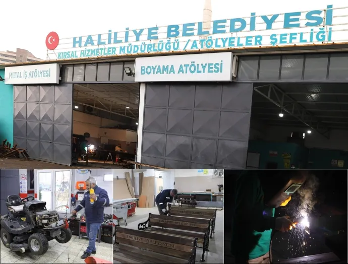 Haliliye Belediyesi, "Üreten Belediye" anlayışı kapsamında çalışmalarını aralıksız olarak sürdürüyor. Bu anlayış doğrultusunda maliyetleri kontrol altında tutmak amacıyla kendi üretim altyapısını güçlendirmeye devam ediyor. Kırsal Hizmetler Müdürlüğüne bağlı Atölyeler Şefliği çatısı altında yürütülen çalışmalarla; metal, ahşap ve elektronik gibi temel hizmet alanlarında ihtiyaç duyulan materyaller belediye personeli tarafından üretiliyor ve onarılıyor.