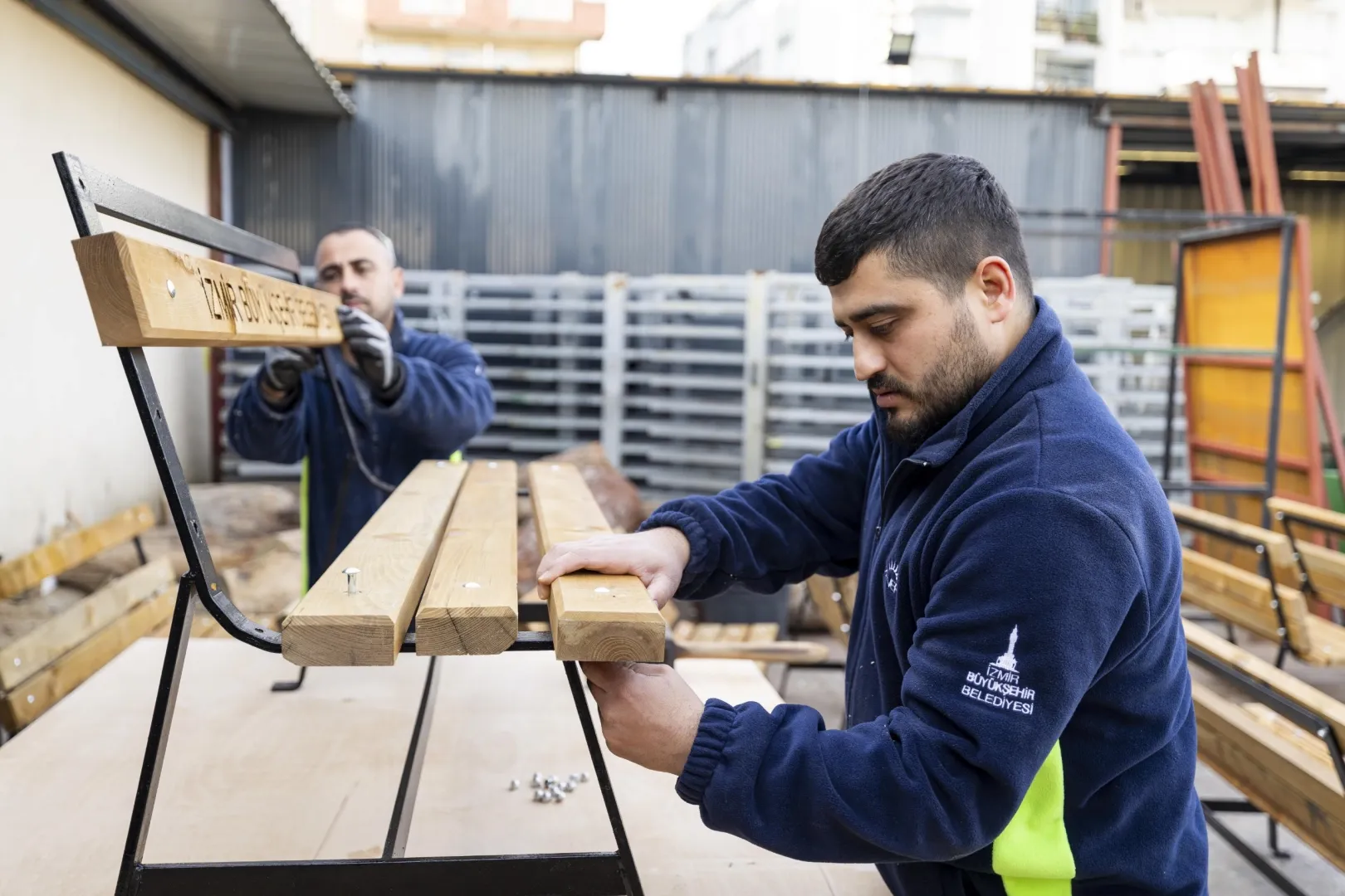 İZMİR (İGFA) - İzmir Büyükşehir Belediyesi, kentin sosyal donatı alanlarında kullanılan ekipmanları kendi bünyesinde üreterek yenilemeye devam ediyor.