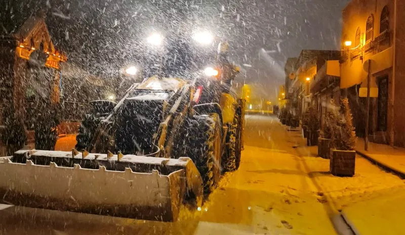 Mardin Büyükşehir Belediyesi ekipleri, yoğun kar yağışı nedeniyle gece boyunca karla mücadele çalışmalarını sürdürdü.