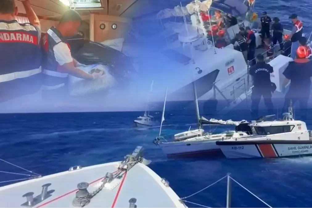 Muğla İl Jandarma Komutanlığı ve Sahil Güvenlik Güney Ege Grup Komutanlığı’nın koordineli çalışması sonucu, uluslararası uyuşturucu tacirlerine ait bir tekne JİHA’larla saniye saniye izlendi ve denizden operasyon düzenlendi.