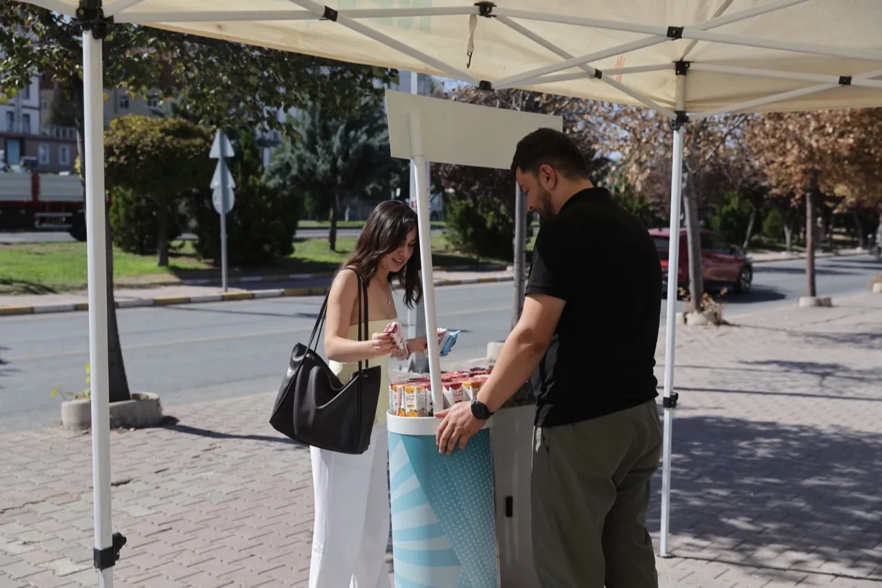 Hoş geldiniz etkinliği kapsamında öğrencilere üniversite girişinden bulunan Nevşehir Belediyesi standında çeşitli ikramlar yapılarak kentin manevi değerleri tanıtılıyor.